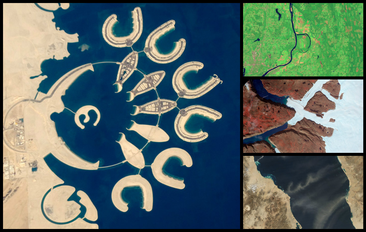 C: Un astronauta tomó esta foto de una cadena de islas artificiales en el borde de la isla de Bahrein el 23 de enero de 2011.