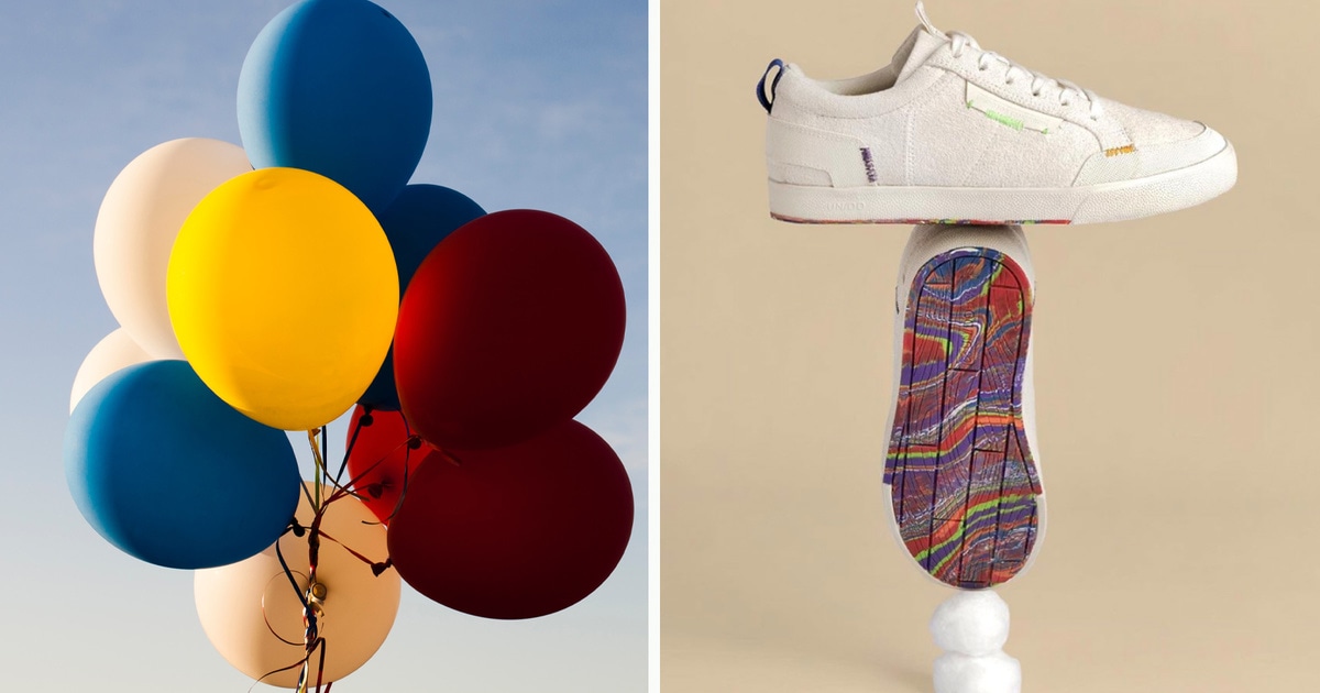 Una de esas marcas de calzado, Undo for Tomorrow, lanzó recientemente Nuven, una zapatilla vegana hecha parcialmente con globos de fiesta reciclados junto con otros materiales sostenibles.