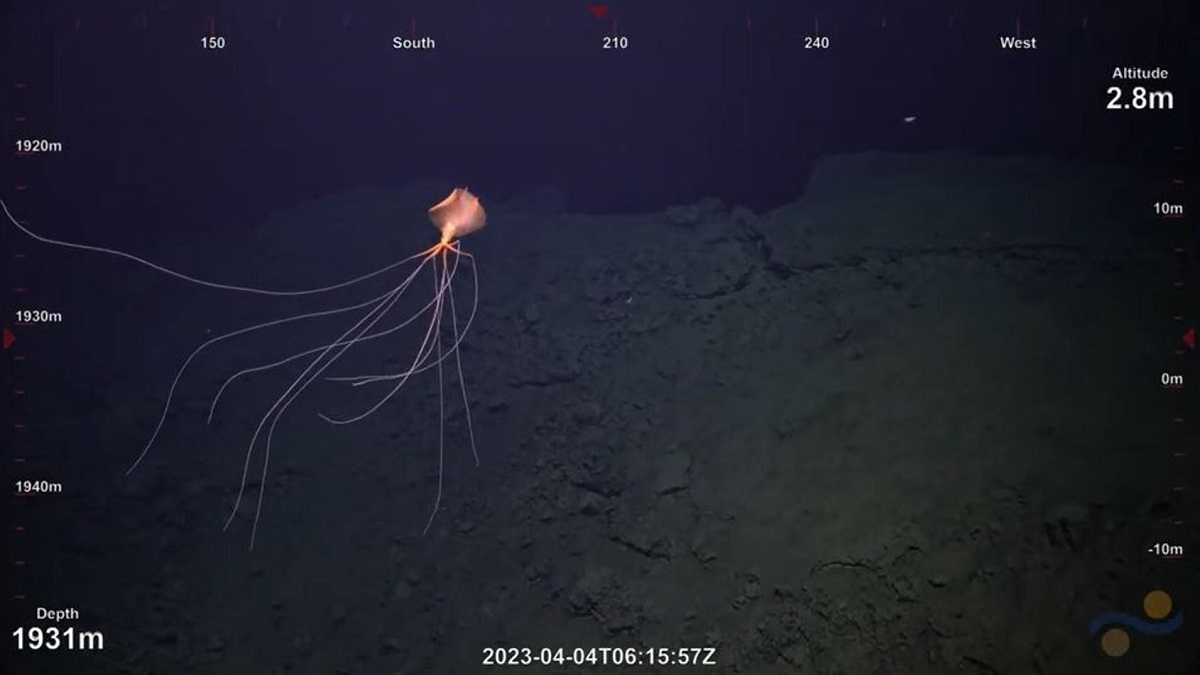 Bigfin squid can be found “throughout the world’s deep ocean, and they can live deeper than any other known squid,” according to NOAA Ocean Exploration. The squid filmed by Schmidt Ocean researchers was found about 6,315 feet underwater or about 1.2 miles down, the video shows.