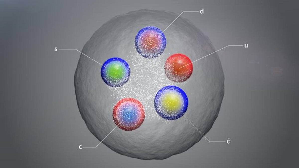 Los descubrimientos anunciados por la colaboración LHCb incluyen nuevos tipos de hadrones exóticos. El primer tipo, observado en un análisis de «desintegraciones» de mesones B cargados negativamente, es un pentaquark compuesto por un quark charm y un antiquark charm y un quark up, down y un quark extraño. Es el primer pentaquark que contiene un quark extraño. El hallazgo tiene una enorme significación estadística de 15 desviaciones estándar, mucho más allá de las 5 desviaciones estándar que se requieren para reclamar la observación de una partícula en la física de partículas.