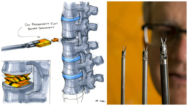 “Todo el concepto se basa en hacer incisiones cada vez más pequeñas,” dijo Howell. “Para ello, estamos creando dispositivos que se pueden insertar en una pequeña incisión y luego se despliegan en el interior del cuerpo para llevar a cabo una función quirúrgica específica”.