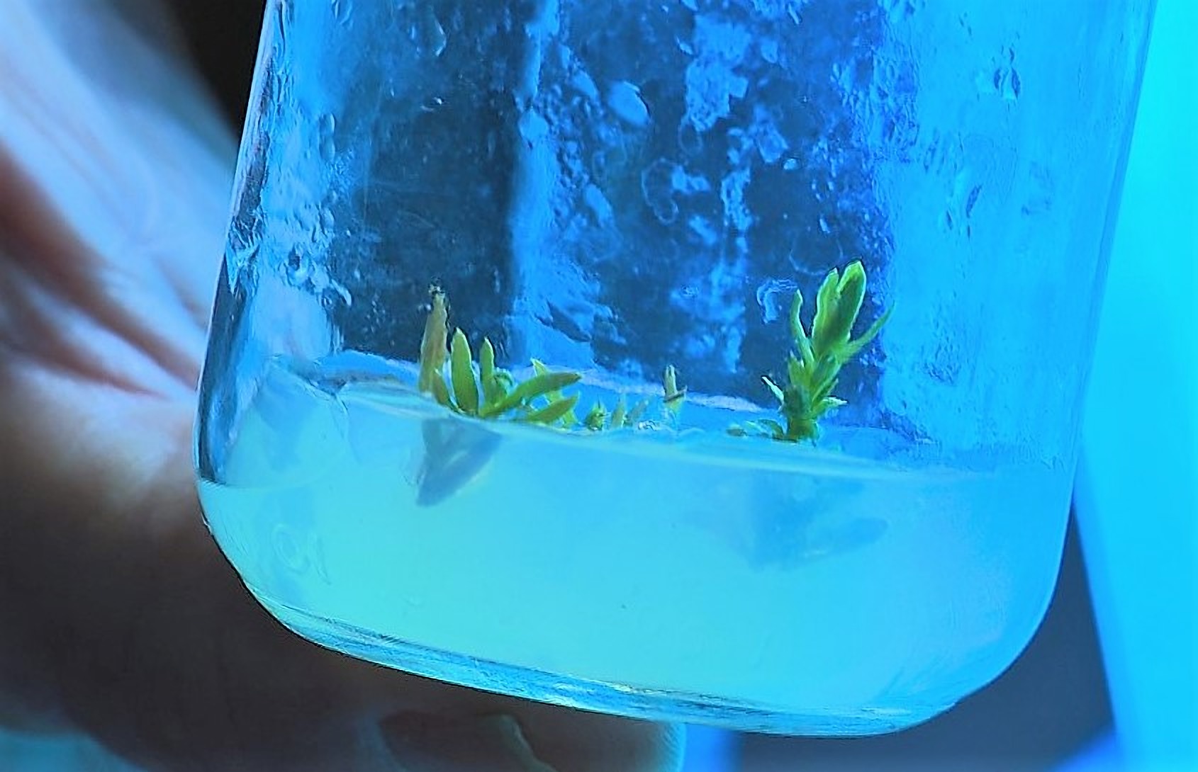 Las plántulas de árboles de 3,000 años son colocadas en frascos sellados empapados en una solución llamada «Agar, para que en dos meses formen raíces.