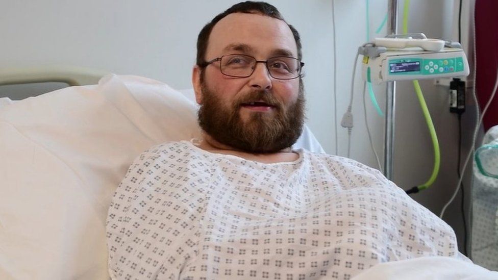 El hombre de 35 años, que pasó cuatro semanas con la mano pegada al abdomen, aún se está recuperando en Leicester Royal Infirmary.