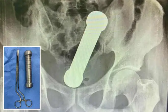 Los médicos ordenaron radiografías y encontraron la pieza del equipo de gimnasia, que tenía 20 cm de largo y estaba alojada donde el colon se encuentra con el recto. Escribiendo en el International Journal of Surgery Case Reports , los médicos dijeron que el caso había sido de naturaleza sexual.
