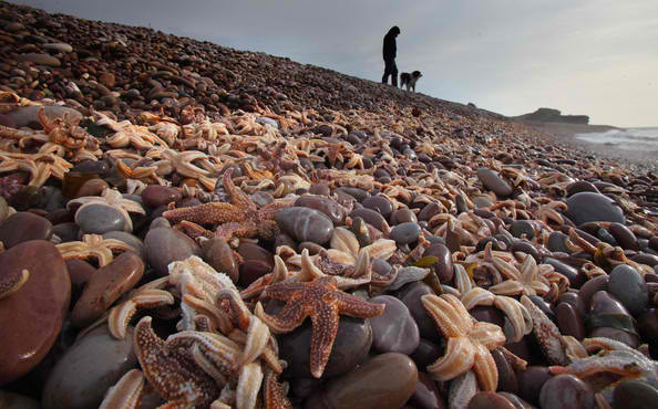 «Decenas de miles» de estrellas de mar varadas han sido arrastradas a la costa de Gales.