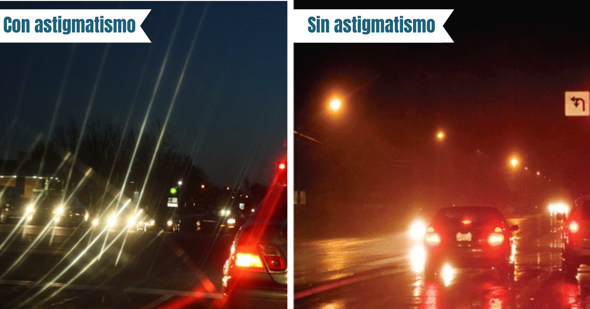 Las personas con astigmatismo suelen enfrentar desafíos visuales adicionales por la noche o en condiciones de baja luz. La visión puede volverse más borrosa o distorsionada, y es común que las luces tengan halos o reflejos alrededor, especialmente notorio al conducir. Además, la falta de luz puede aumentar la fatiga ocular y dificultar la percepción de profundidad y contraste, lo que hace más complicadas actividades como la conducción nocturna o desplazarse en áreas poco iluminadas.