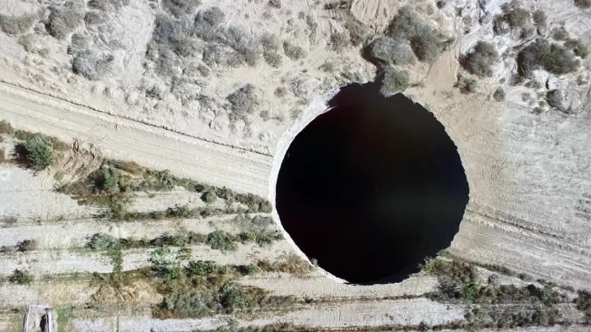 Se acaba de abrir un sumidero gigantesco en Chile, mide unos 32 metros de diámetro y unos 200 metros de profundidad.
