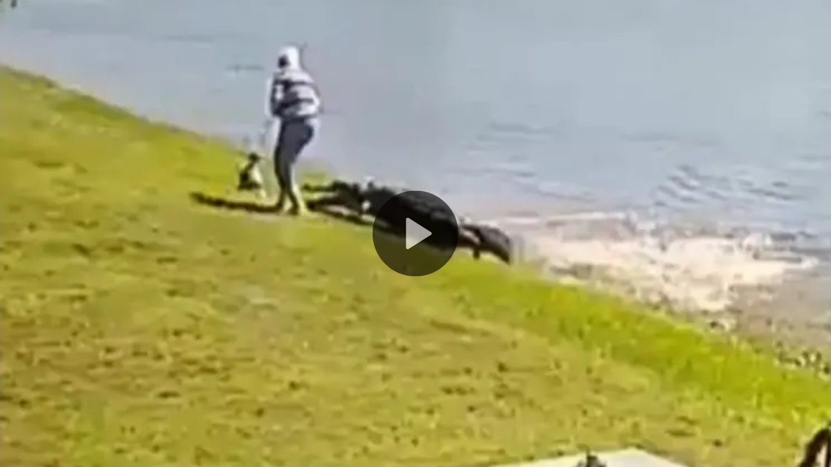 Video muestra a un caimán de 3 metros acechando a una mujer de 85 años y su perro antes de salir del lago y arrastrarla al mismo